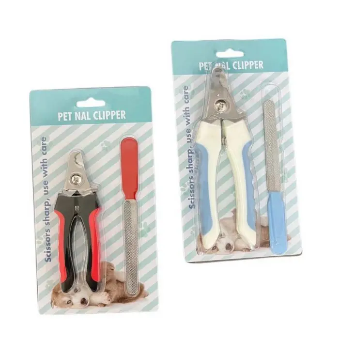 Set alicate + lima mascotasMaterial: Acero inoxidableColores blanco/celeste y negro/rojoSe envía surtido